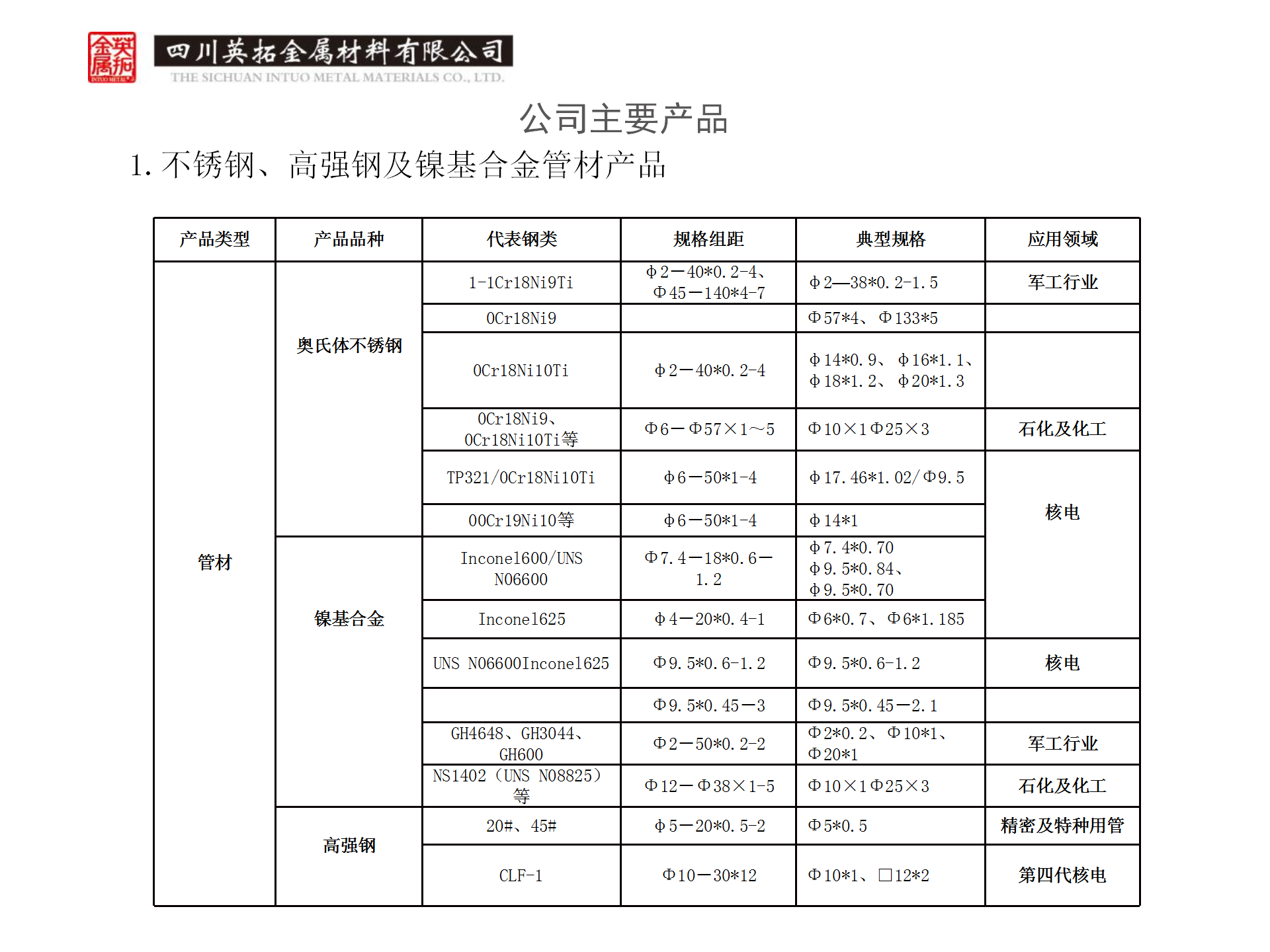 2169管材(代表规格:φ3*1.05) 属于Cr-Mn-N系奥氏体高强不锈钢,主要应用于航空器用液压输油导管、兵器行业高功率密度柴油机、输氢和储氢设备用管和新能源车辆发动机等领域。